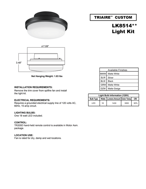 TriAire Ceiling Fan LED Light Kit - Matte Greige