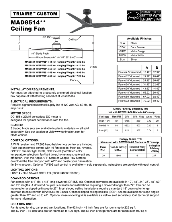 Product image for FANIMATION MAD8514GRW TRIAIRE CUSTOM MOTOR - GRW