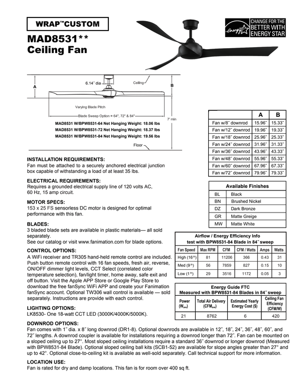 FANIMATION MAD8531MW WRAP CUSTOM MOTOR - MW