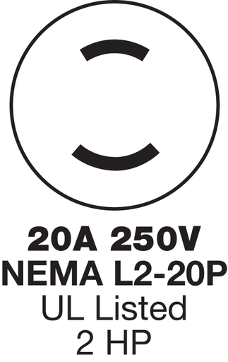 Hubbell HBL7102C 20 Amp 250 Volt 2-Pole 4-Wire NEMA L2-20P Black and White Locking Plug